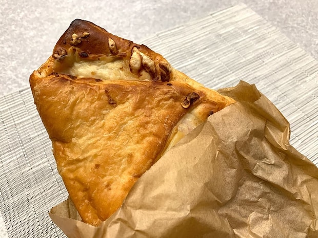 袋で包まれているので、手を汚さず食べられるのも嬉しい一品。クロワッサン生地の間からはチーズが顔を覗かせています。