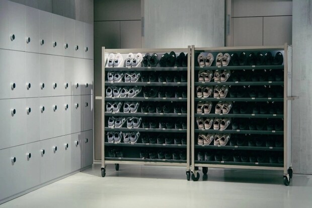 続いて、地下へ。この店舗の魅力は商品ラインナップだけではありません。実はこの地下フロアにはロッカー完備&広々としたコミュニティスペースがあるんです。