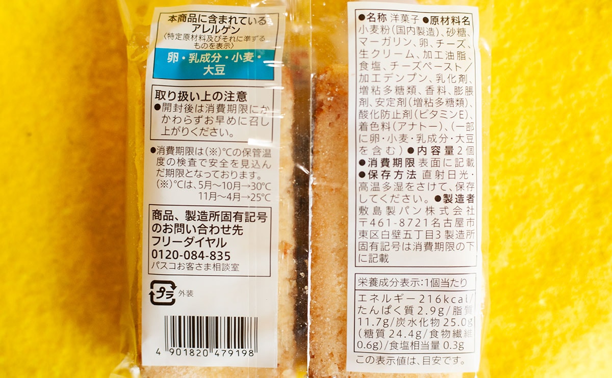 原材料を見ても、使われているのはマーガリンで、バターは入っていませんが、まるでバターを使っているかのようなリッチな味わいでしたよ。詳しいことはわからないけれど、もしかしたらチーズが似たような役割を果たしているのかもしれませんね。
