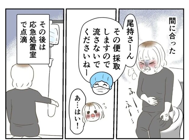 揺れる救急車を耐え、病院で検査を受けた尾持さん。コロナ禍のため、陰性が確認されるまでトイレは使えないと言われ、相当苦しかったのではないでしょうか…。点滴を受け、腹痛はかなり楽になり横になり検査結果を待っていると、尾持さんの元へ医師が現れます。そして、腹痛の原因はホルモンによる食中毒だと伝えられます。