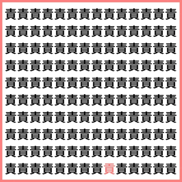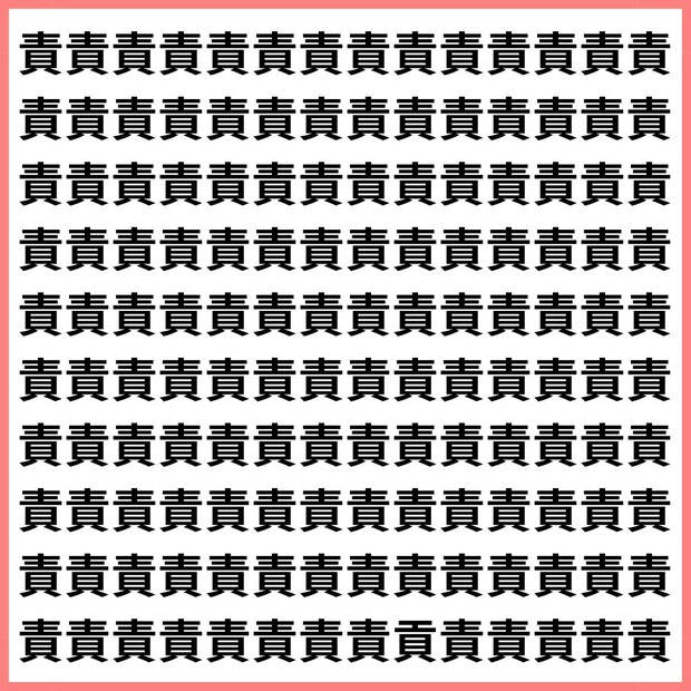 たくさんの「責」の中に、1文字だけ違う漢字が混ざっています。