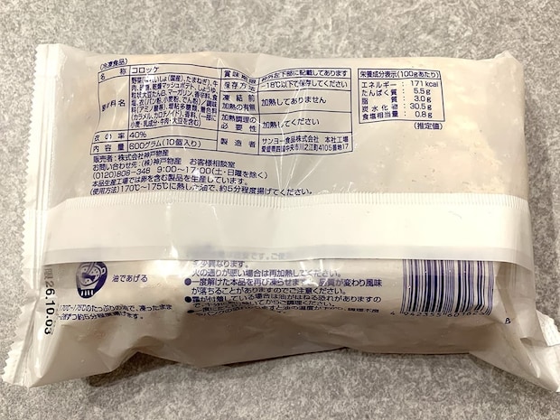 10個のコロッケが入って価格は278円(税込)。1個あたり約27円で食べられる非常にお得な商品となっています。