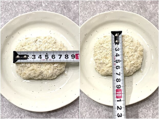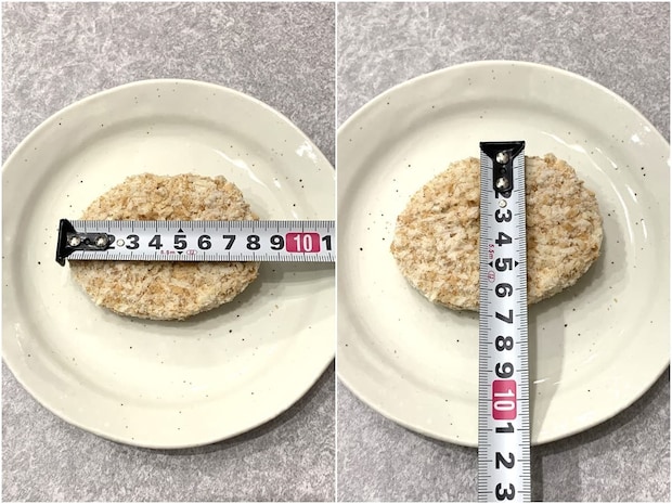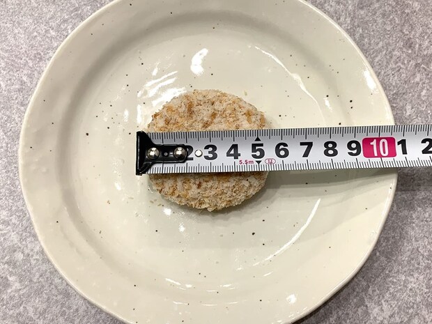 大きさを測ってみたところ、約横8cm×縦6.5cmで大きすぎず小さすぎずなサイズ感。夕食の主菜にもなりますし、お弁当のおかずとしても大活躍しますよ♪