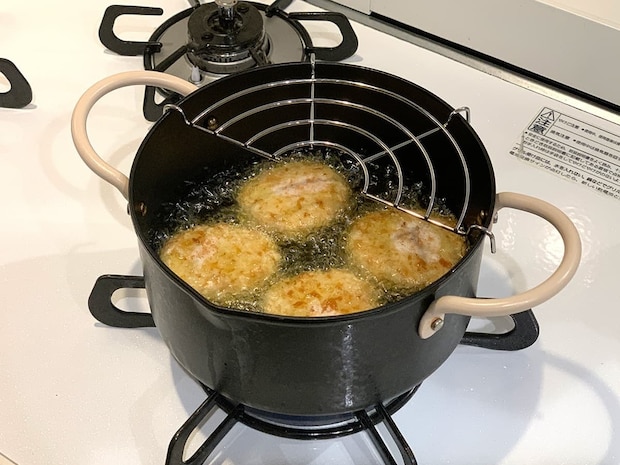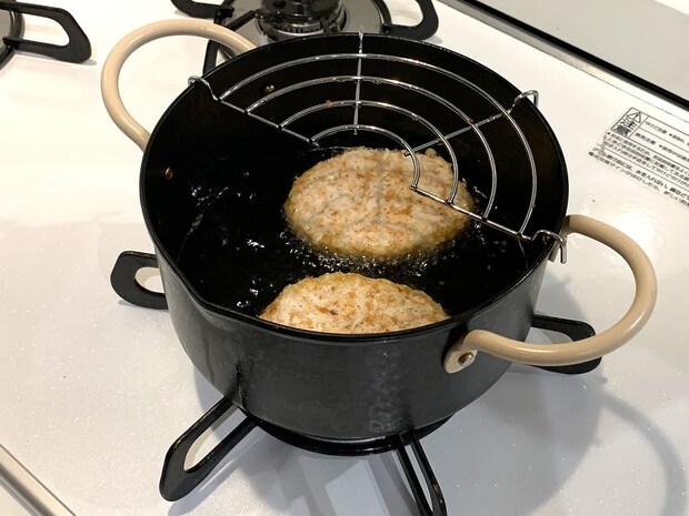 凍ったままのコロッケを170~175°の油で、4分半~5分半揚げていきます。