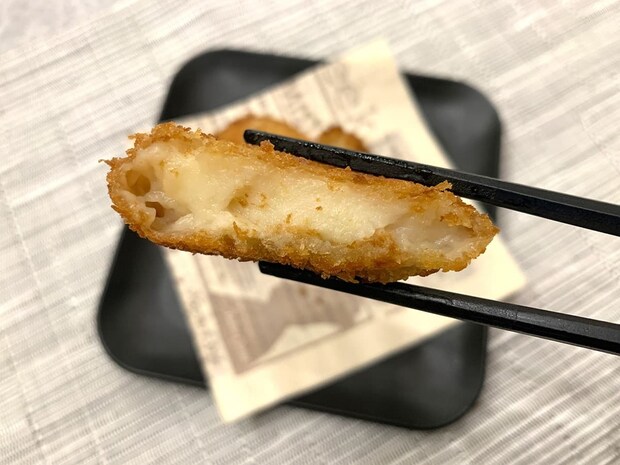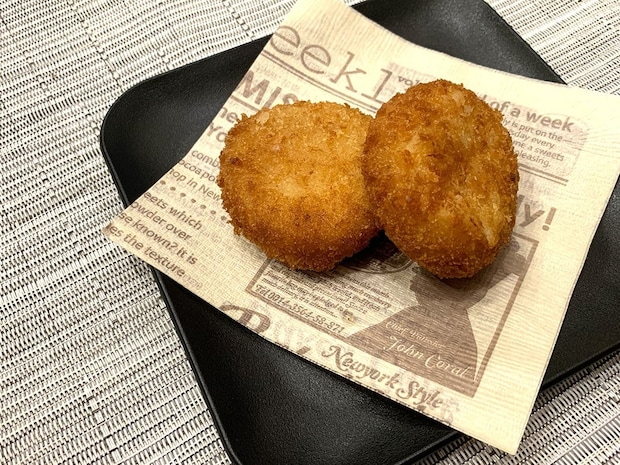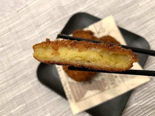 それでは、揚がったホタテ入りクリーミーコロッケを実食していきます。