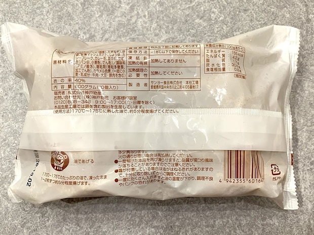 調理する際は170~175°の油で、凍ったまま約5分揚げていきます。電子レンジでの調理は不可な点にご注意ください。