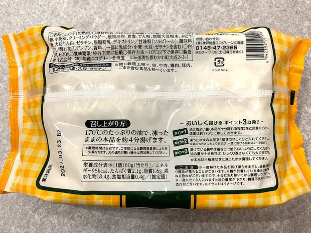 明るいギンガムチェックのパッケージが目を引く一品。”北海道便”と書かれていますが、業務スーパーの北海道のグループ会社が製造しているようですね!