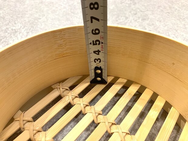高さについては約6.5cm。後ほどご紹介しますが、中華まんや少し大きい温野菜でも問題なく入るサイズ感ですよ!