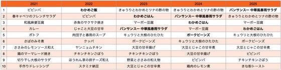 2021年以降の給食レシピの保存数ランキング