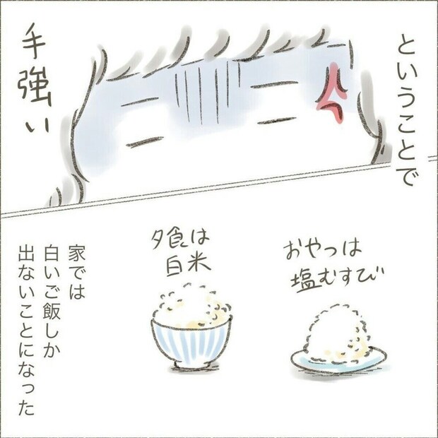 そこでせせらぎさんはご飯しか与えないという罰を長男けーくんに言い渡します。せせらぎさんは、反省してしっかりご飯を食べることを想像していたのですが…なんとけーくんは大喜び。これにはせせらぎさんもびっくりです。