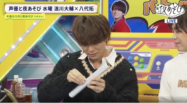 続いて絡まった有線イヤホンをより早く解いた方が勝ちとなる「イヤホンほどきバトル」へ。浪川は「こんがらがること自体が嫌い、見るだけでイライラしちゃうから、こんがらがらないようにしてんだよ。そういうの一番苦手」と明かす。