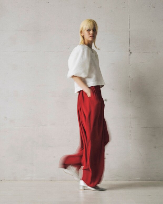ブラウス¥37,400、パンツ¥36,300(レルム)