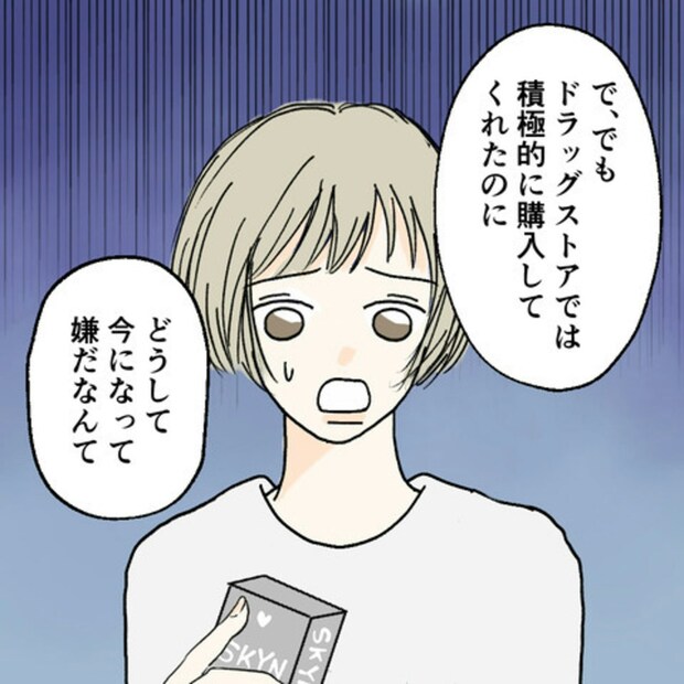 S葉さんの彼氏・E原さんはゴムは感度が下がるから着けたくないと言います。実はカレは最初からゴムはいらないと思っていたといい、逆にS葉さんにゴムを買う理由を聞いてきました。