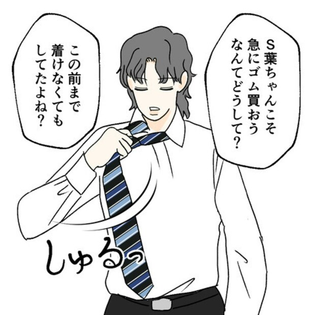 S葉さんは、E原さんが買ってきたゴムなのに急にいらないと言われ戸惑ってしまいます。そんなE原さんは、ゴムを最初から着けるつもりはなかったようです。