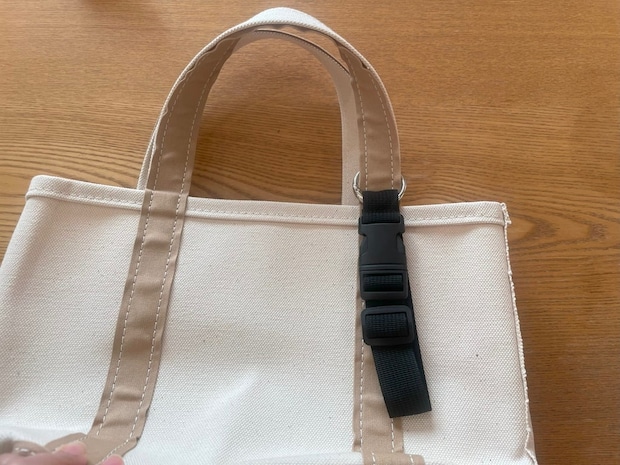 今回、持ち手の幅が3cmのバッグに取り付けたところ、ぴったりだったので、もう少し幅が広いと少し難しいかもしれません。