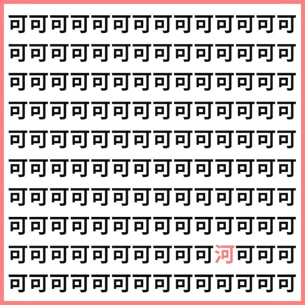 たくさんの「可」の中に、1文字だけ違う漢字が混ざっています。