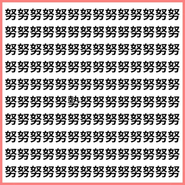 たくさんの「努」の中に、1文字だけ違う漢字が混ざっています。