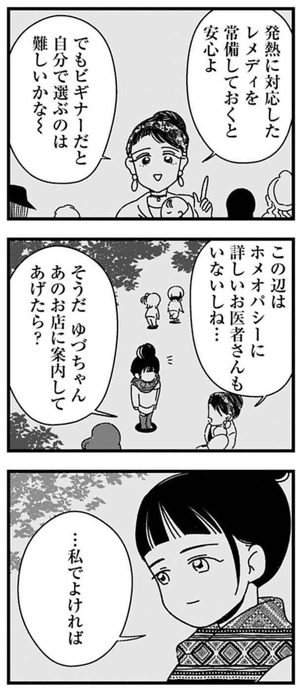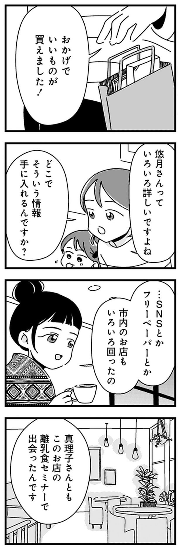 前回、育児サークルのママたちの影響を受け、いいと思ったものを家族にも勧めるが家族と心は離れていった。ある日、歩美は悠月と子連れでオーガニックカフェに足を運ぶ。物知りな悠月に色々尋ねていた歩美だが、ユイが泣き出してしまって…!?