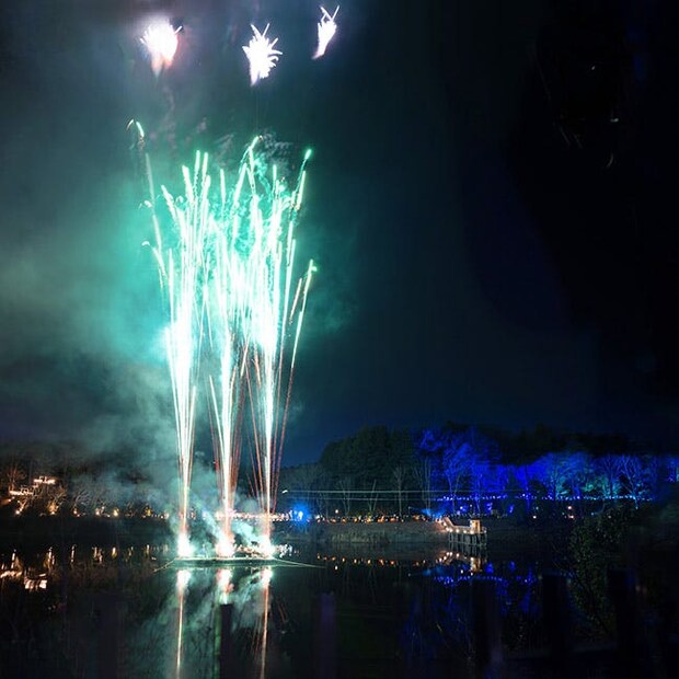 冬の夜空を美しく彩る。湖上から打ち上げる花火に感動