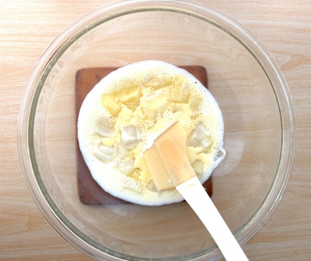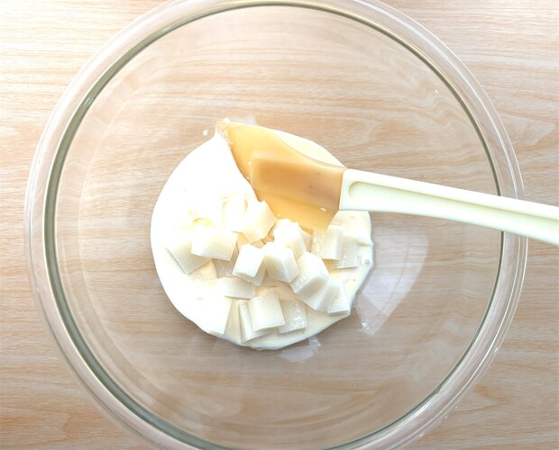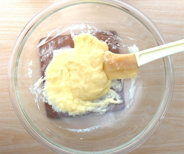 下の画像の状態になるまで、全体をなじませるようによく混ぜ合わせます。
