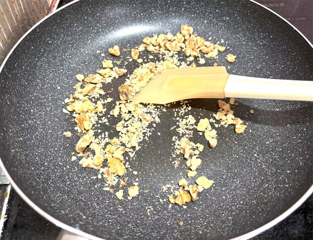 くるみは「生くるみ」を使用したので、事前にフライパンで数分乾煎りしました。