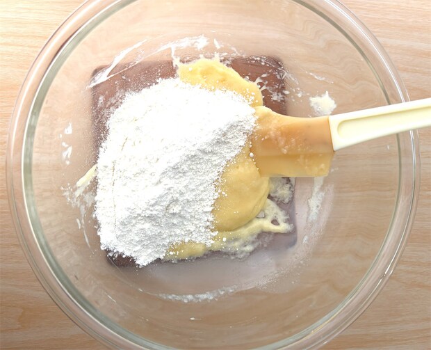 そこへホットケーキミックスを加え、ひとまとまりになるようによく混ぜます。