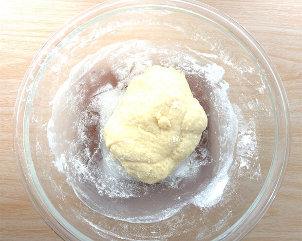 ある程度まとまったら、素手で粉っぽさがなくなるまでよく捏ねると、下の画像のような状態になります。