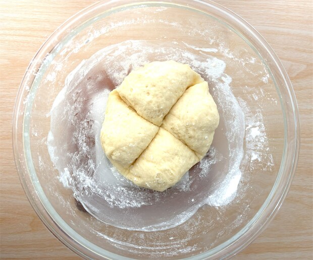 捏ねた生地は、だいたい4等分になるように分けておきましょう。