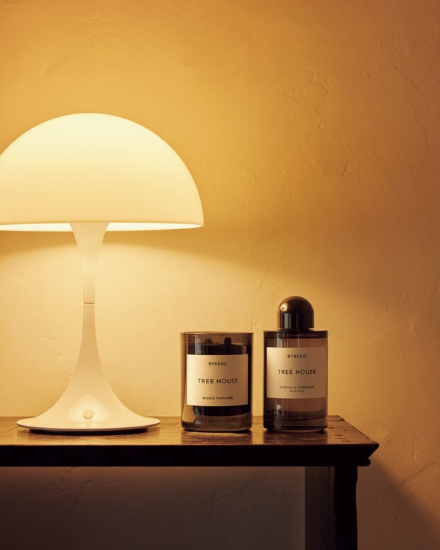 左から:パンテラ250ポータブル¥83,600(ルイスポールセン/ザ・コンランショップ 丸の内店)、フレグランスキャンドル¥11,000、ルームスプレー ツリーハウス 250mL¥14,960(共にバイレード/エドストローム オフィス)