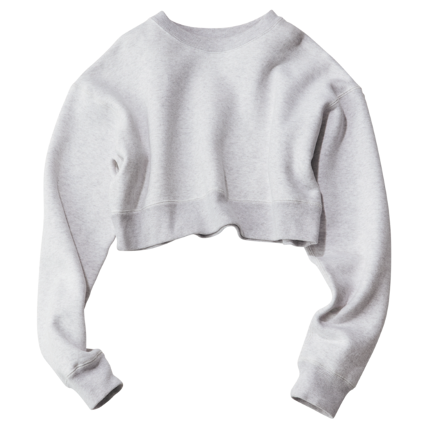 「ハイウエストボトムと合わせたい短丈トップス。首の詰まり具合も色も絶妙でタイプです。スエットでカジュアルだから多少おなかが見えたとしてもいやらしくならないかと(笑)」
