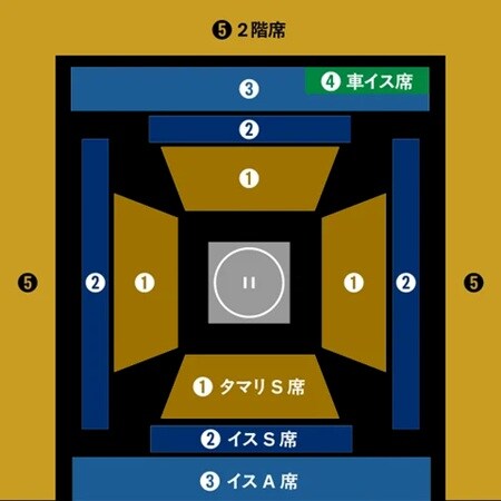 席とチケットの情報を紹介しよう。1階席の「タマリS席(行橋場所記念座布団付き)」16,000円は、土俵に最も近い特等席。迫力ある取り組みを間近で観て、力士のぶつかり合う音を全身で感じられる、臨場感あふれる贅沢な観戦体験を楽しめる。