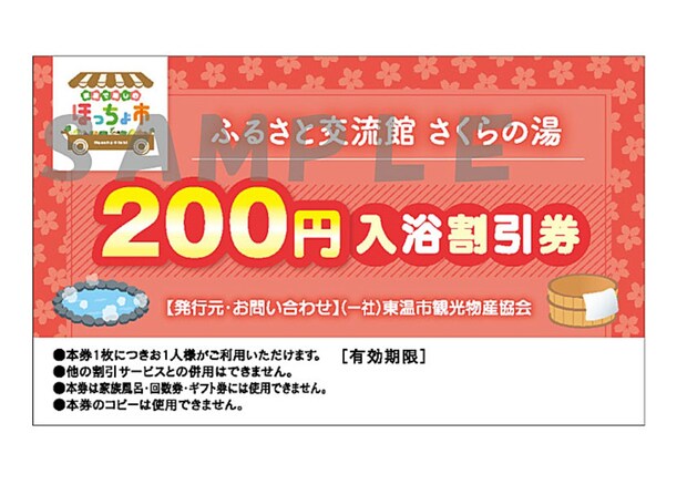 お買い物した方に嬉しいお知らせ♪「ほっちょ市」の各ブースでお買い物すると、さくらの湯入浴割引券がもらえます!