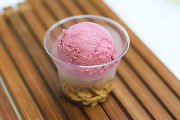 さぬき市大串半島にある「さぬきワイナリー」で作られたノンアルコールのぶどう味のアイス。