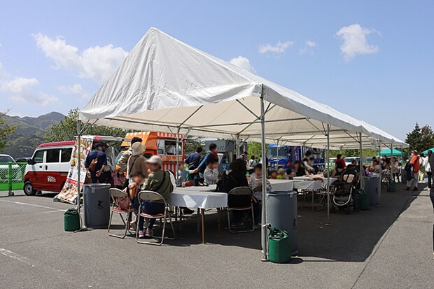 広々としたテント内の飲食スペースがあるので、車イスやベビーカーを利用する方ものんびりと食事やカフェタイムが満喫できますよ。