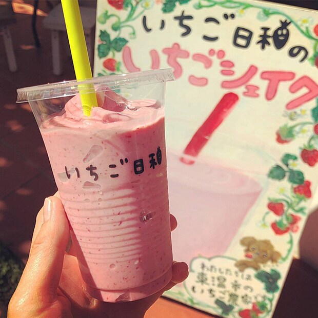 完熟いちごをたっぷり使った甘酸っぱいシェイクは濃厚で◎