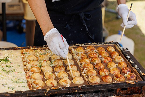 外はカリッと中はトロ〜リのたこ焼きや香ばしいソースの焼きそば、ジューシーなフランクフルトといった定番屋台グルメもたくさん!