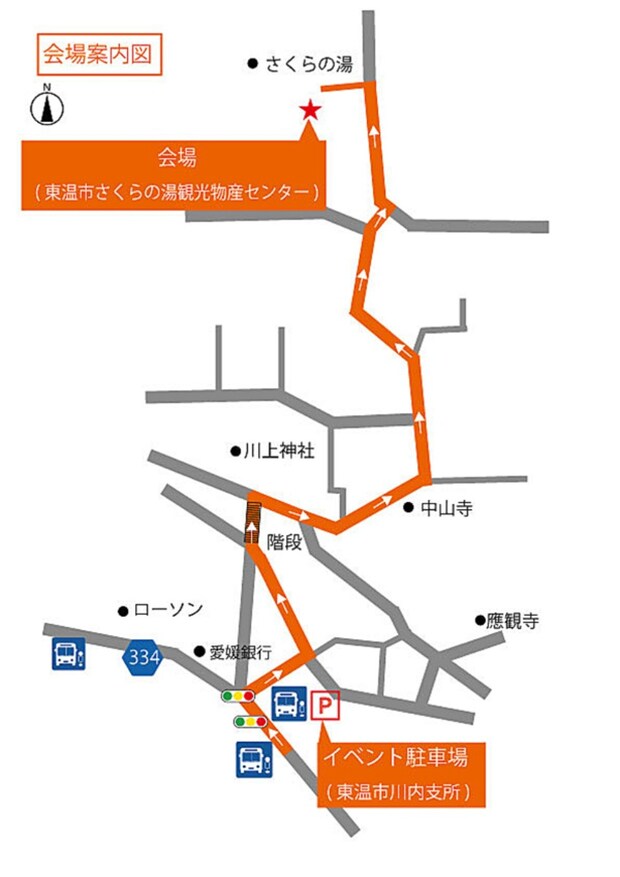 当日は「東温市川内支所」がイベント駐車場となっております。