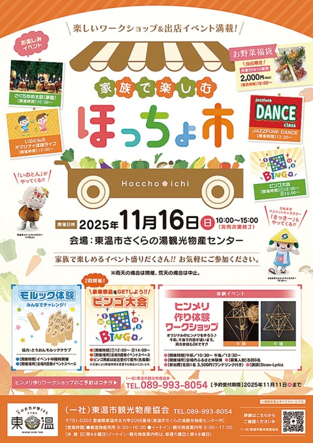 今年最後の「ほっちょ市」。グルメにステージイベント、秋の楽しみが盛りだくさんです♪家族みんなで出かけて、いっぱい楽しみましょう!