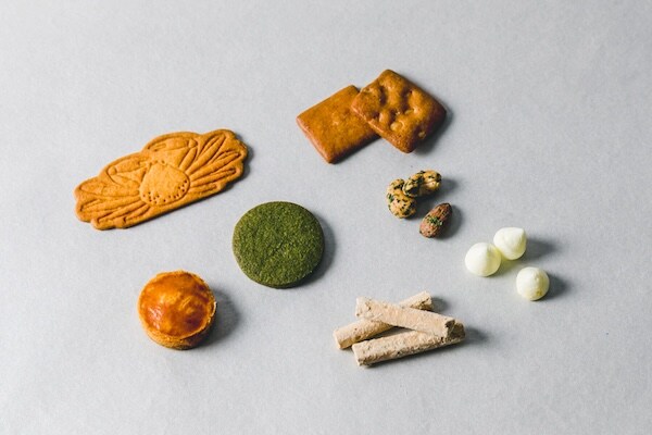内容は、カニをかたどった印象的なカニクッキー、TOKIWA GARDEN名物「コーヒー牛乳」をイメージしたコーヒー牛乳クッキー、あおさ香るあおさミックスナッツ、豊岡産醤油を使用した醤油ブルトンヌ、そのほか塩キャラメルサブレ、橘のメレンゲ、黒豆きなこメレンゲ、柳並木のサブレの8種類。