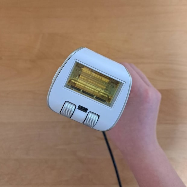 ローラーアタッチメントは足や腕のケアに。自動で7回連続で照射してくれるので広範囲のケアをスピーディーに行えます。両腕は25秒、両足は90秒で完了!
