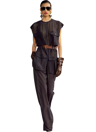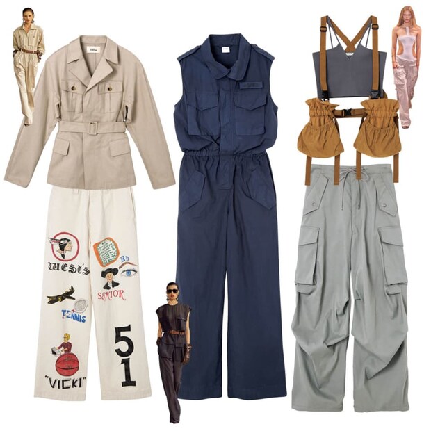サンローランのサファリルックや、イザベル マランのワークウェアなど、ユーティリティスタイルもチェックしておきたいホットキーワード。一見カジュアルなイメージが強いけれど、合わせる小物使いや着こなし方で実はきちんとした印象やモダンなムードにも見せられる。サファリジャケットやジャンプスーツはオンに取り入れられるキレイめなものも。