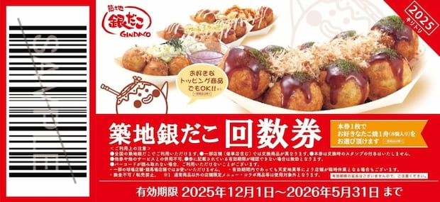 築地銀だこ『ぜったいお得な回数券』(2025年秋)イメージ