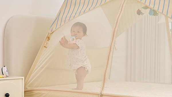 従来のベッドガードと違い、韓国で生まれたベッドの上に設置するテント型ベッドガードという新しいかたちが特徴で、テントのように全体を包み込む設計で、ママとパパにとっては安心の空間に。子どもにとっては秘密基地のような空間になるだろう。