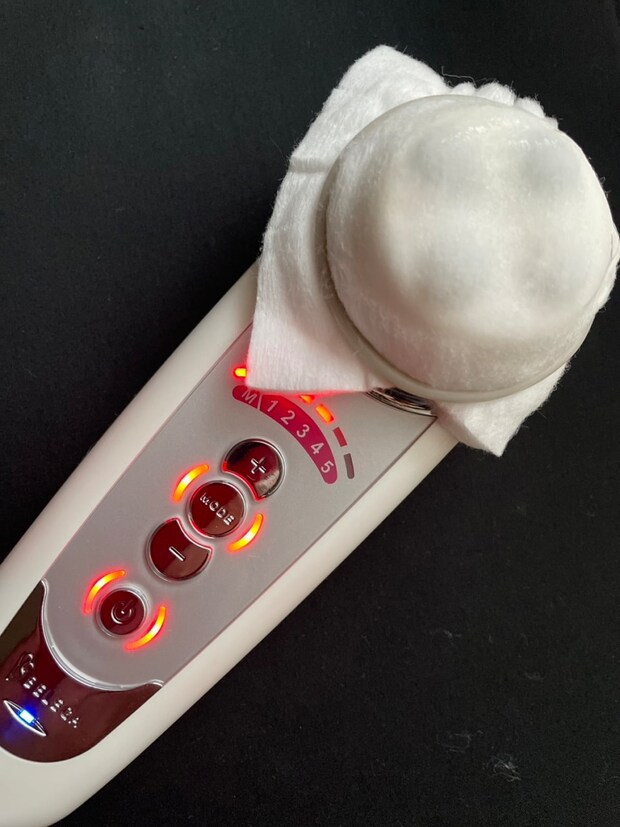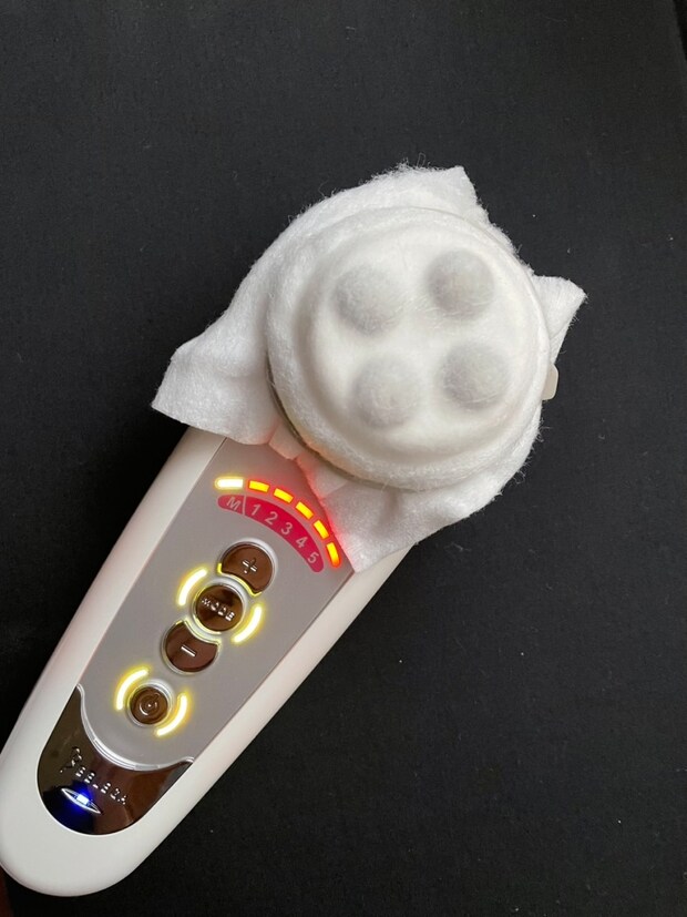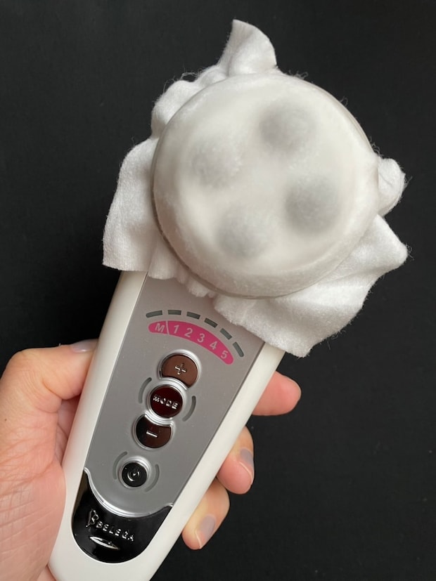 全てのモードを、コットンに化粧水をつけて使用します。セルキュア専用の化粧水がベストですが、防腐剤の入っていないものであればOK。持ってびっくり、軽い!136gです。