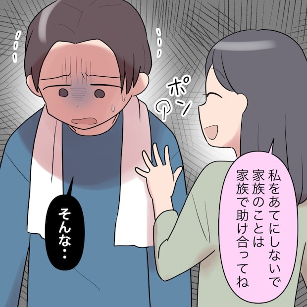 私は「うん、だから自分のことを自分でやらないとね」と言って「ユウタもお義父さんやお義母さんの介護とか必要になった時に困るよ?」と淡々と伝えました。