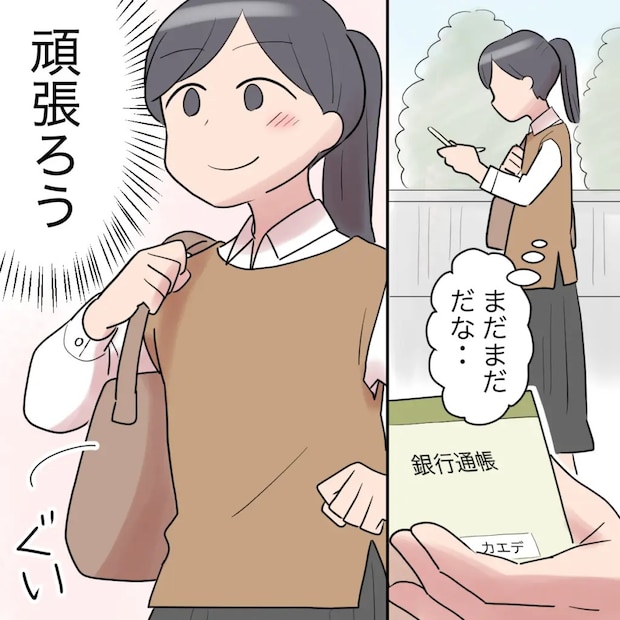 私はひとりになると、そっと通帳を開いて数字を確認しました。まだまだだな・・・。でも、頑張ろう。私は笑顔で前を向き、力強く歩き出しました。今の私には、子どもたちと笑顔で過ごす明るい未来が見えています。
