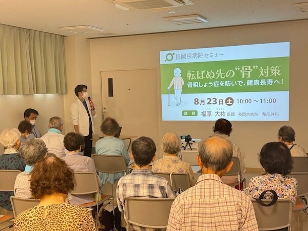 8月に開催された整形外科セミナーでは、福原大祐医師が「骨粗鬆症の予防」をテーマに話を披露。早期に満席になり25人が参加し、終了後も熱心に質問が飛び、関心の高さが分かるセミナーになったという。