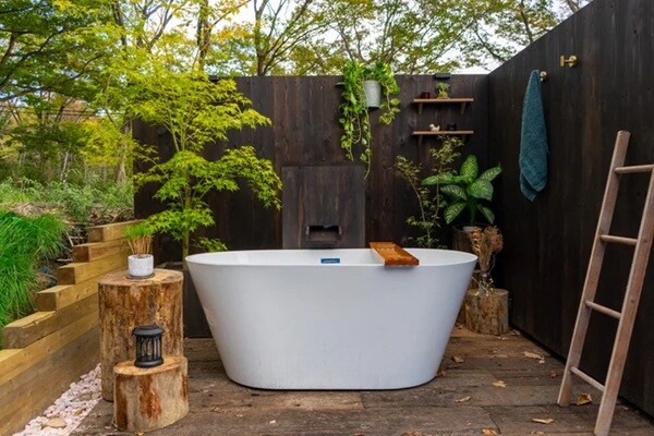 全棟にフィンランド式プライベートサウナを備え、好きなタイミングでサウナを楽しめる「Earthboat」共通の体験はもちろん、那須湯本の硫黄泉を楽しめる共用露天風呂やプライベート露天風呂付き棟もあり、大切な人や家族と自然の中でゆったり滞できる。