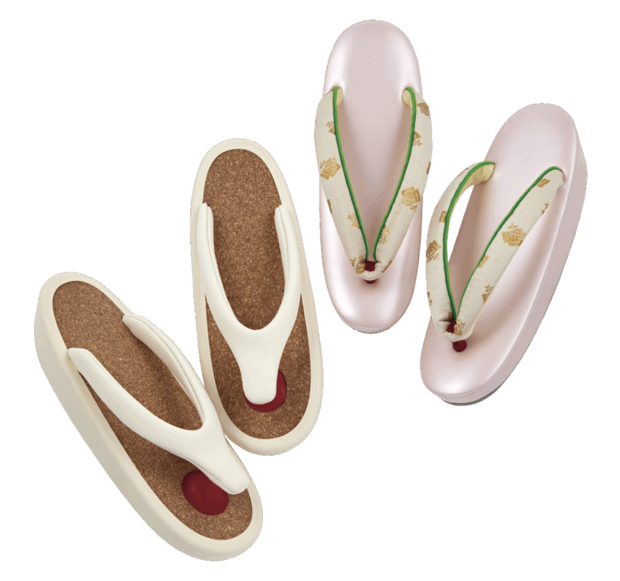 白サンダル¥30,800(OJOJO NAITO/祇園 ない藤)、ピンクサンダル¥110,000(祇園 ない藤)