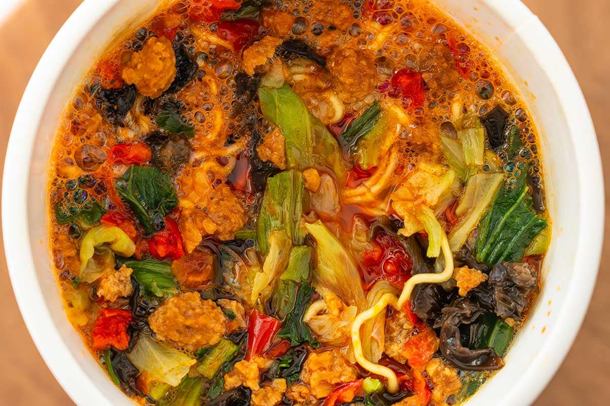 第1弾となる本商品は、近年人気を博している“麻辣湯麺”をテーマにしたもの。牛と豚をベースに豆板醤などで味を調え、ジンジャー、ガーリック、コリアンダーなどの15種のスパイスを使用しています。